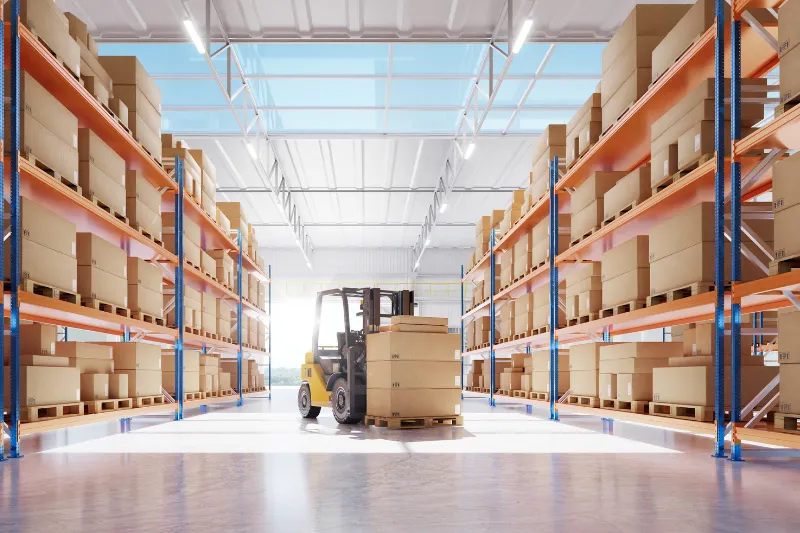 ในคลังสินค้ามักมีชั้นวางสูงและเส้นทางแคบ